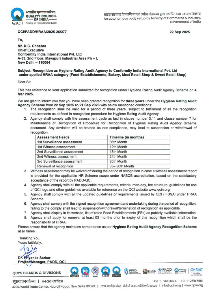 Conformity India International Pvt. Ltd. is NABCB Accredited Product Certification Body as per ISO/IEC 17065:2012 and NABCB Accredited Inspection Body as per ISO/IEC 17020:2012.